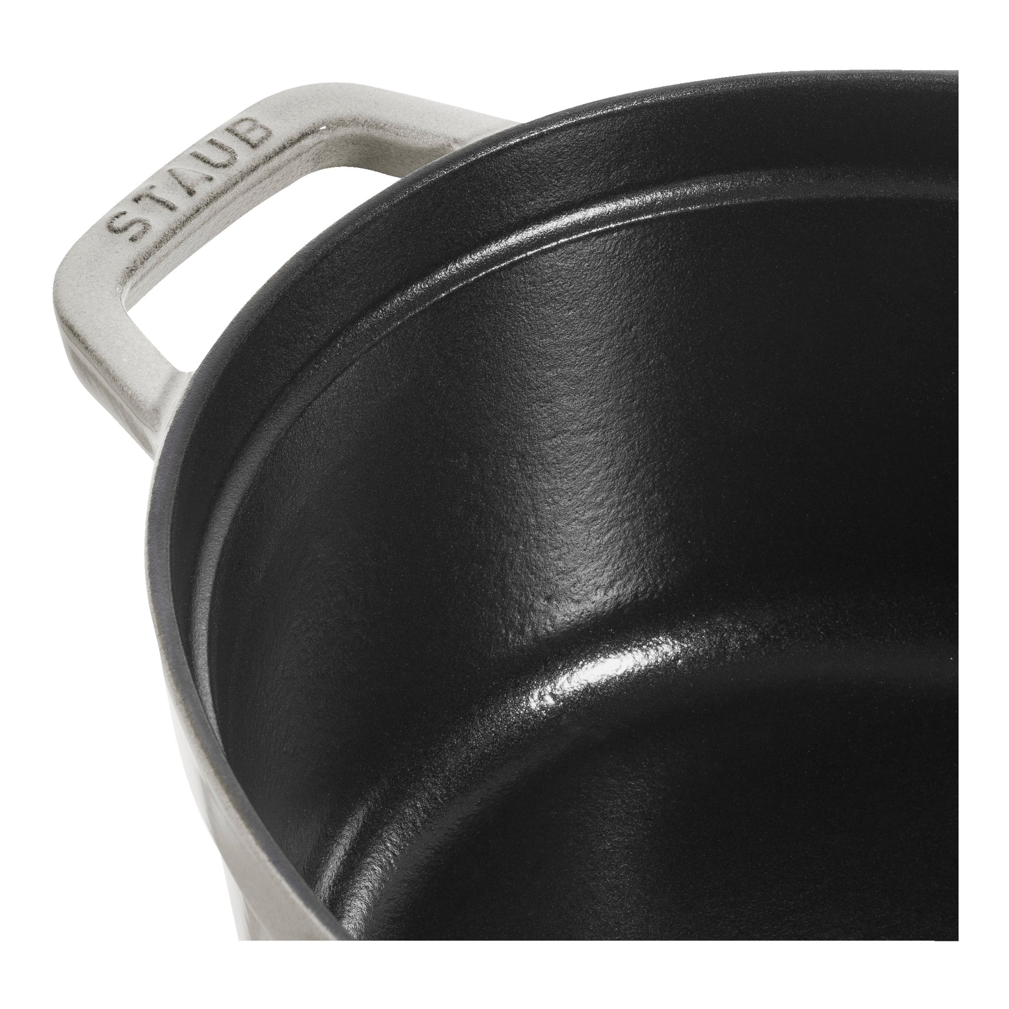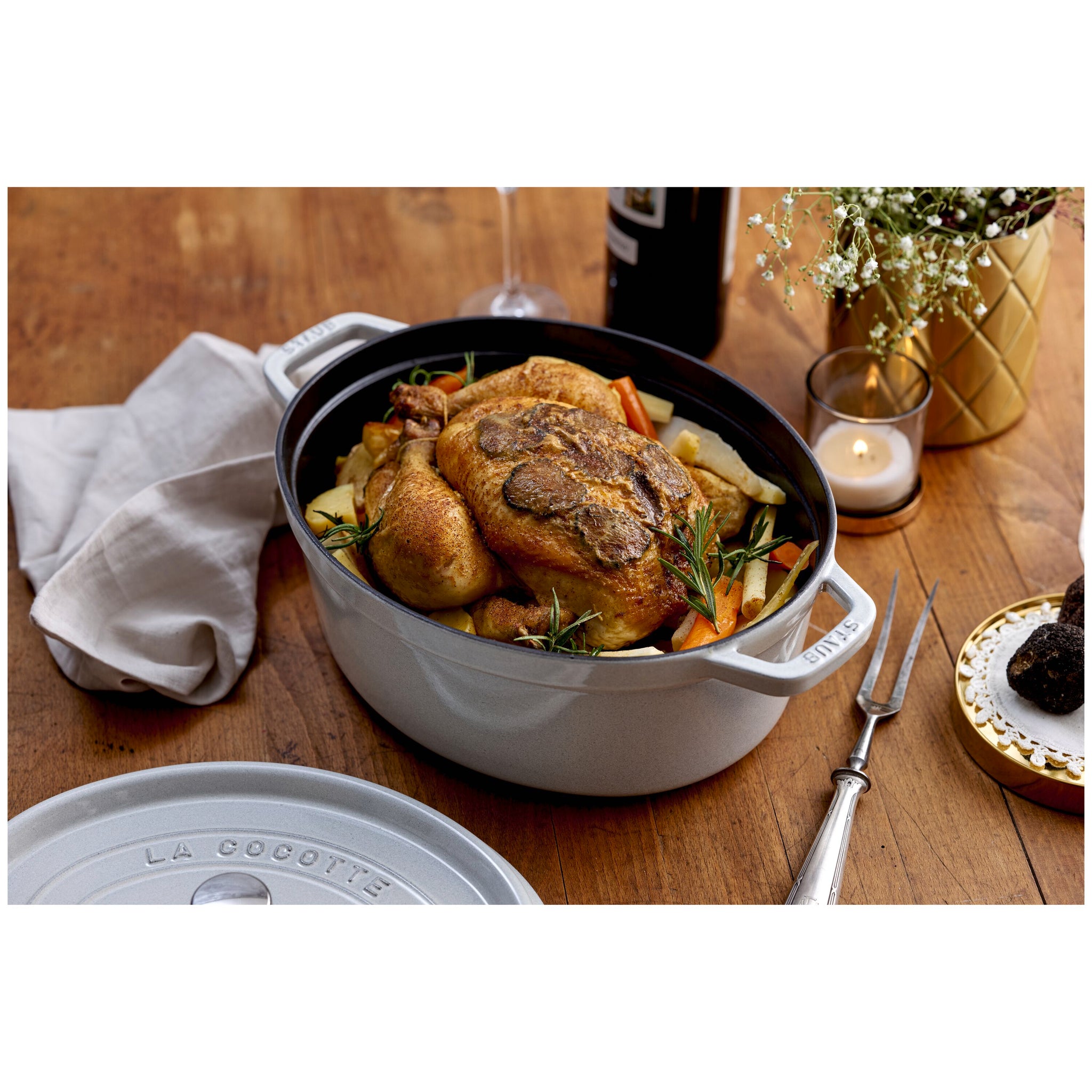 Cet émail de qualité supérieure permet d'obtenir une meilleure résistance aux rayures et facile d'entretien, il possède les qualités idéales pour saisir, rôtir et caraméliser les aliments. Née en Alsace, la cocotte Staub a su traverser le temps et les frontières , elle est aussi bien utilisée par les amateurs que les Grands Chefs.